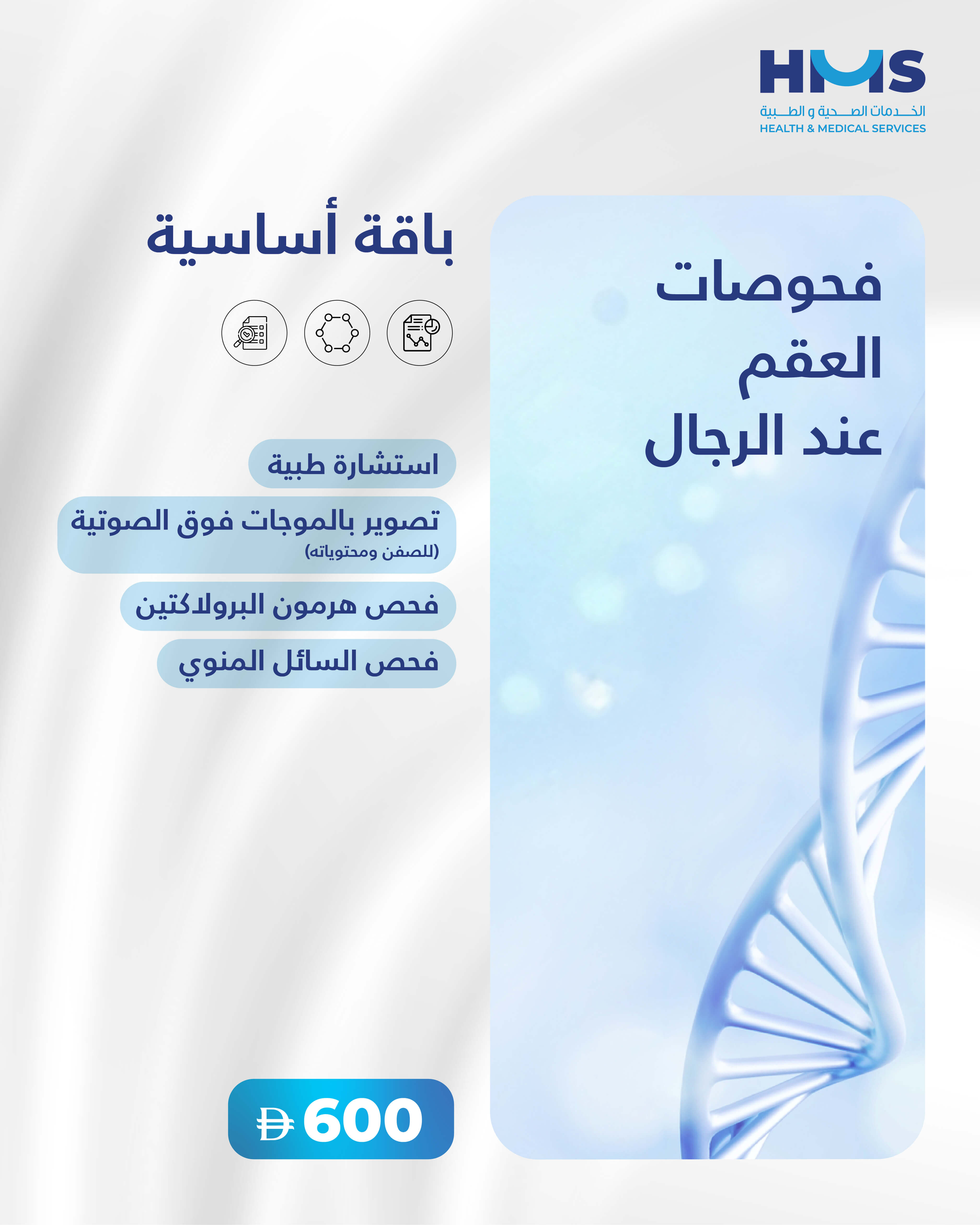 تم تصميم فحوصات العقم عند الرجال لدينا لتقييم العوامل الأساسية التي تؤثر على الخصوبة، بما في ذلك التوازن الهرموني، وصحة الحيوانات المنوية، ووظائف الجهاز التناسلي. من خلال الفحوصات المخبرية المتخصصة، والتصوير بالموجات فوق الصوتية، والاستشارة الطبية، نعمل على تحديد الأسباب المحتملة مثل اضطرابات الهرمونات، ضعف عدد أو حركة الحيوانات المنوية، دوالي الخصية، أو أي حالات أخرى قد تؤثر على الخصوبة.