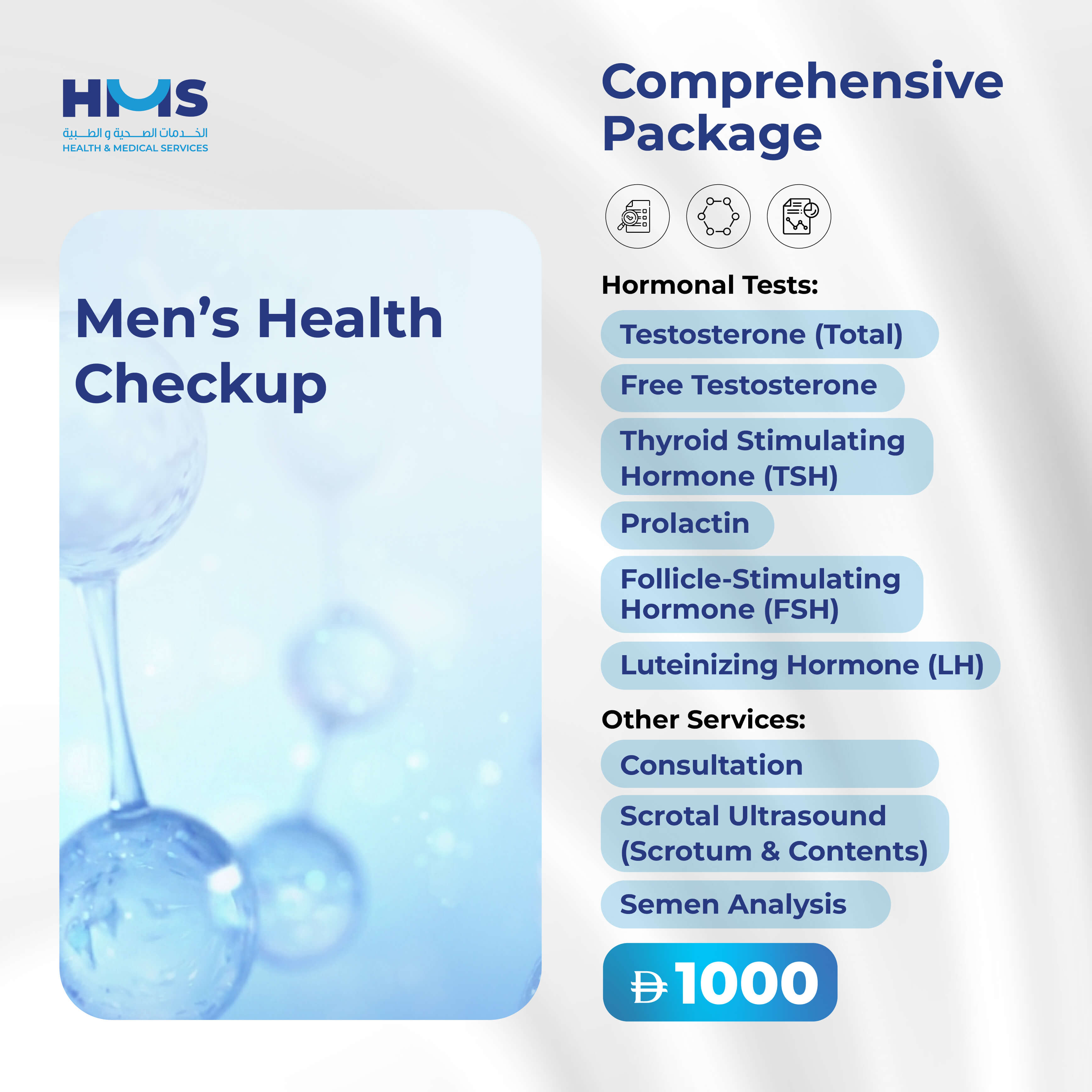 Our Male Infertility Check-Ups are designed to evaluate the key factors that affect male fertility, including hormonal balance, sperm health, and reproductive anatomy. Through specialized tests, imaging, and expert consultation, we help identify potential causes such as hormonal imbalances, low sperm count or motility issues, varicocele, or other underlying conditions.
